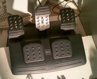 Die Pedale von 2 PC-Lenkrädern als Bremsen&Ruder Ensemble aus 1 Flight Yoke, 1 Quadrant, 2 PC Racing Wheels etc... |